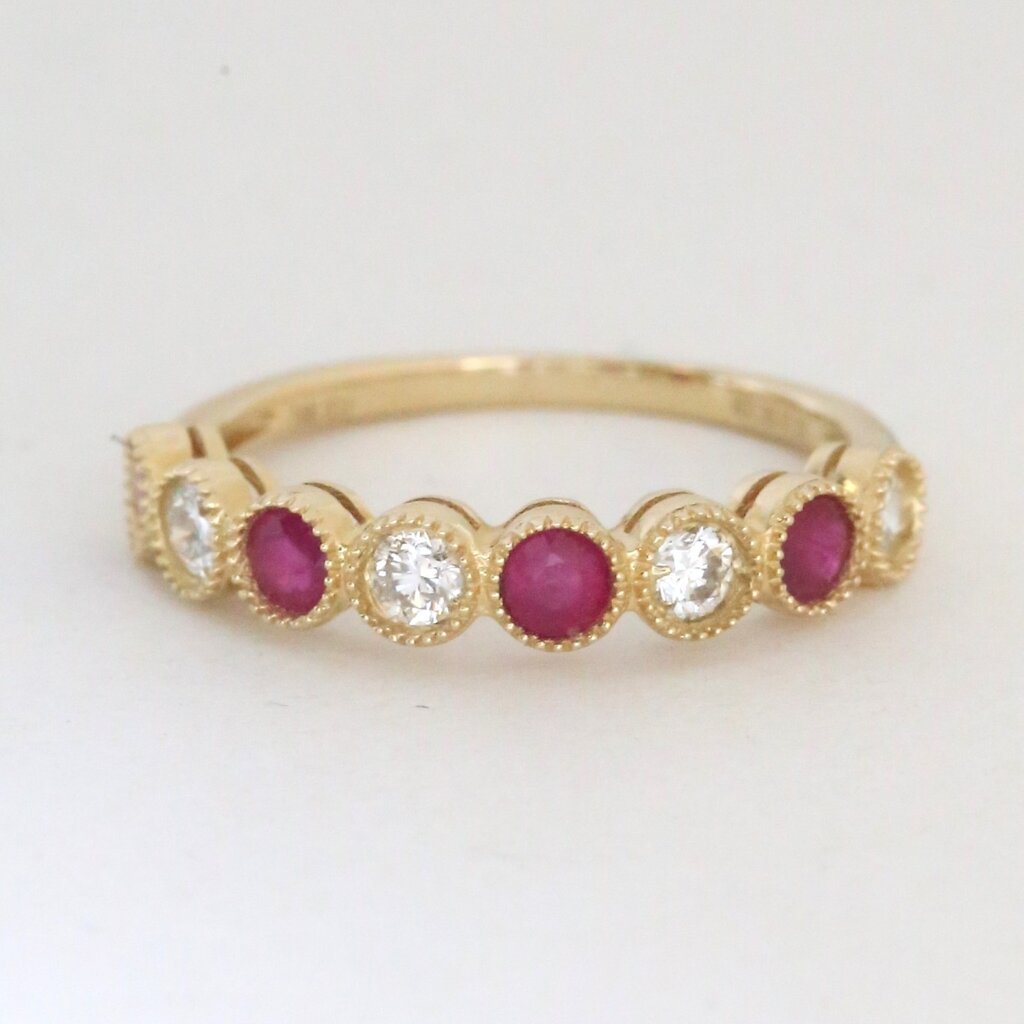 14k Yellow Gold .42ctw Diamond and .50ctw Ruby Milgrain Alternating Stackable Band Ring