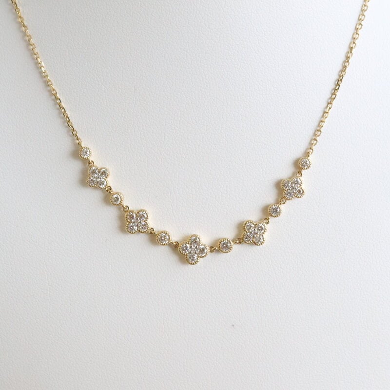 14k Yellow Gold .93ctw Diamond Clover Line Necklace