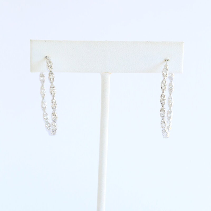 14k White Gold .79ctw Diamond Scalloped Inside Out Hoop Earrings